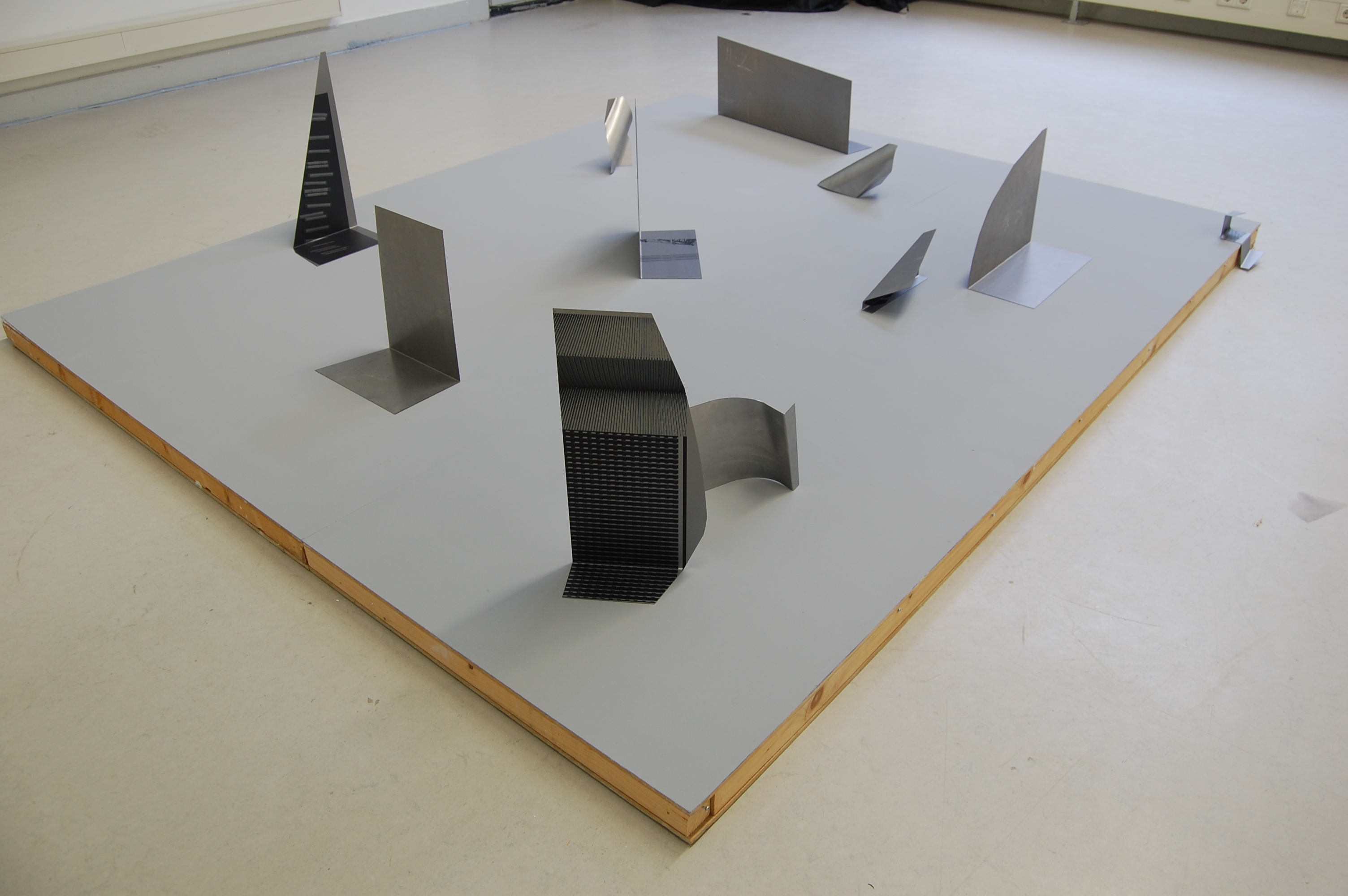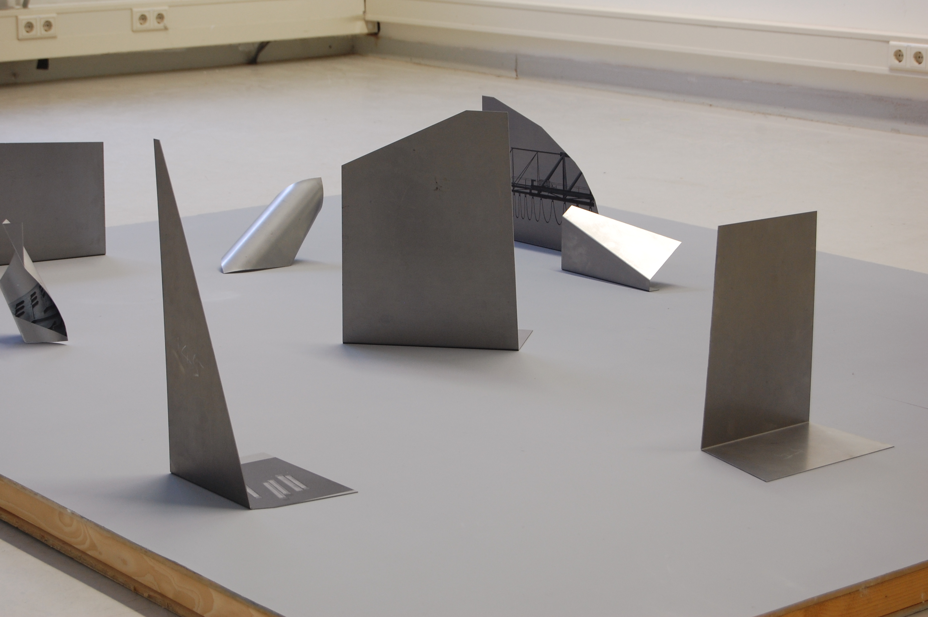Digital prints on steel, film (9min), sound (3min).